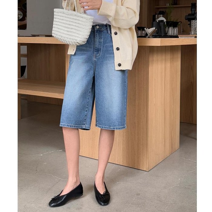 優寶購物《ubao.Tw》特貨品商城,黑貓宅配,取貨付款,Bellee 正韓 時尚版型 小刷色後鬆緊寬管五分牛仔褲 S-L 【0326-17】 | Yahoo拍賣