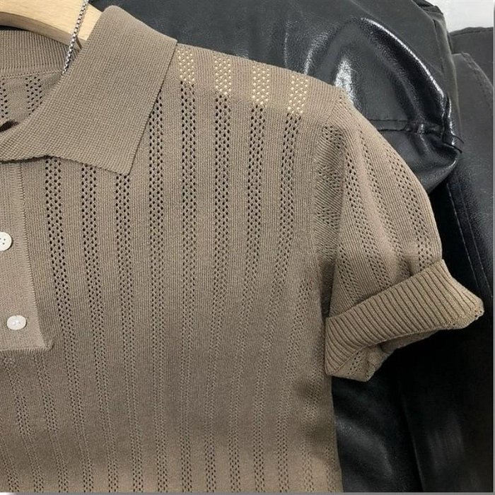 優寶購物《ubao.Tw》特貨品商城,黑貓宅配,取貨付款,2025冰絲男翻領鏤空冰絲短袖polo衫男士針織T恤打底上衣 | Yahoo拍賣