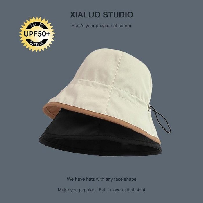 優寶購物《ubao.Tw》特貨品商城,黑貓宅配,取貨付款,(優質ing)防曬漁夫帽女夏韓版防紫外線盆帽沙灘遮臉太陽帽抽繩雙面戴遮陽帽 | Yahoo拍賣