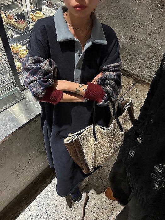 優寶購物《ubao.Tw》特貨品商城,黑貓宅配,取貨付款,熱銷新款高版本✝️ 刷絨衛衣裙 拼接格子休閒寬鬆長款直筒裙 滿599元免運 | Yahoo拍賣