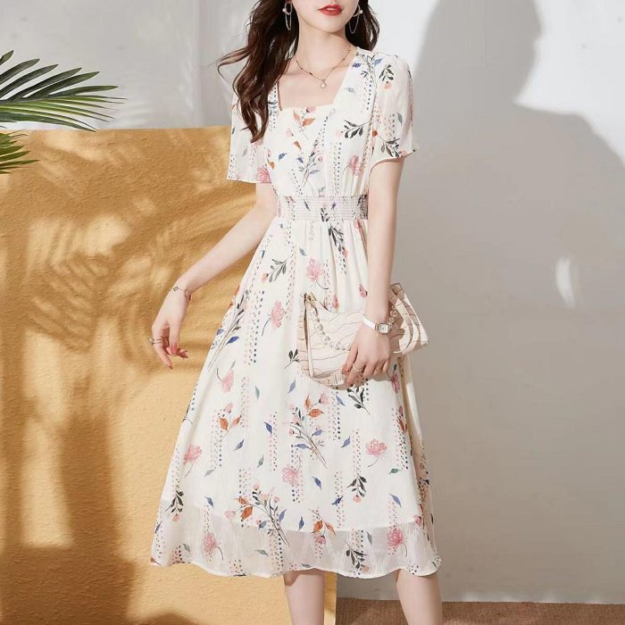 優寶購物《ubao.Tw》特貨品商城,黑貓宅配,取貨付款,【F-store】高級雪紡洋裝女夏裝2024新款收腰顯瘦甜美氣質溫柔風碎花長裙子 | Yahoo拍賣