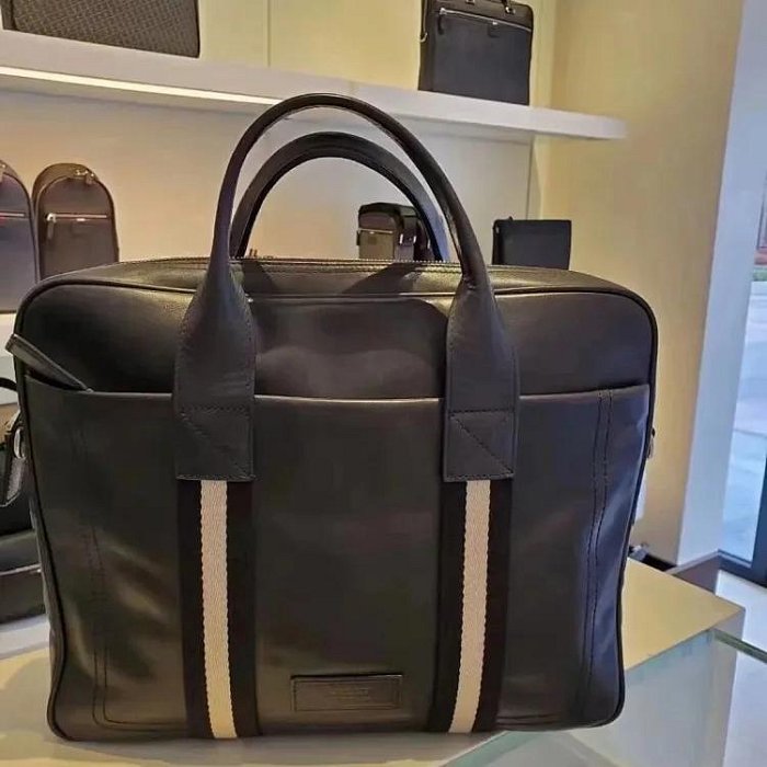 優寶購物《ubao.Tw》特貨品商城,黑貓宅配,取貨付款,特價撿漏BALLY巴利黑白彩帶意大利小牛皮男士公文包 斜挎手提包 | Yahoo拍賣