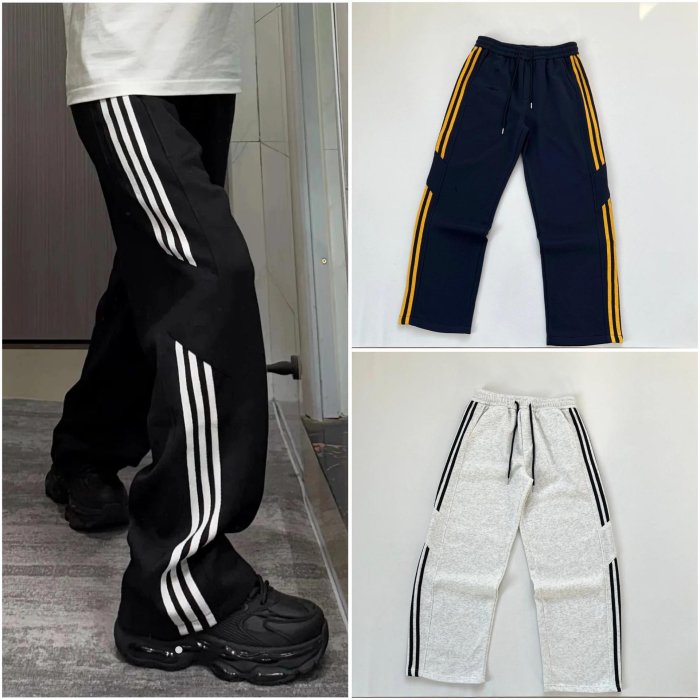 優寶購物《ubao.Tw》特貨品商城,黑貓宅配,取貨付款,那三條槓槓 美式高街 復古三條槓拼接 直筒百搭 加絨運動褲衛褲 男女款 | Yahoo拍賣