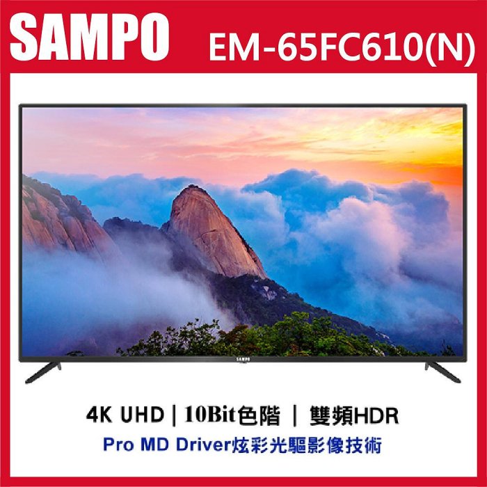 優寶購物《ubao.Tw》特貨品商城,黑貓宅配,取貨付款,【SAMPO聲寶】65吋 4K杜比環繞音響液晶電視 EM-65FC610+視訊盒 含運不安裝 | Yahoo拍賣