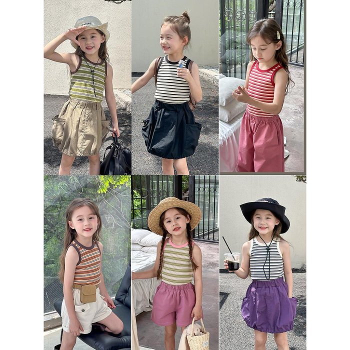 優寶購物《ubao.Tw》特貨品商城,黑貓宅配,取貨付款,2025夏裝女童清爽條紋背心兒童洋氣撞色彩條無袖T恤上衣 | Yahoo拍賣