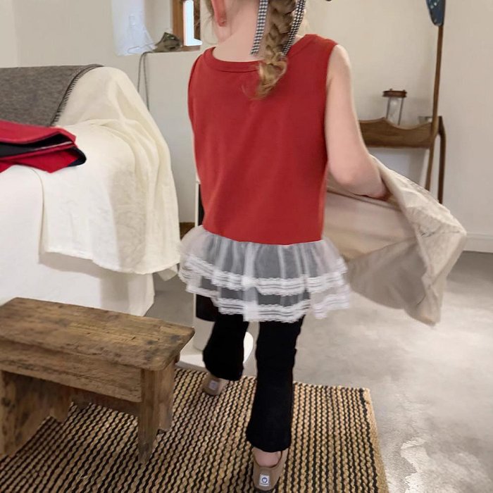優寶購物《ubao.Tw》特貨品商城,黑貓宅配,取貨付款,兒童無袖T恤夏季女童拼接網紗針織上衣寶寶蕾絲背心 | Yahoo拍賣