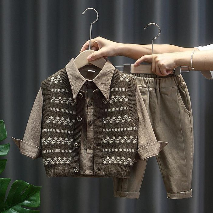 優寶購物《ubao.Tw》特貨品商城,黑貓宅配,取貨付款,【童樂園】寶寶春裝套裝2024新款男童洋氣馬甲針織三件式小兒童春秋小外套毛衣 快速出貨 | Yahoo拍賣
