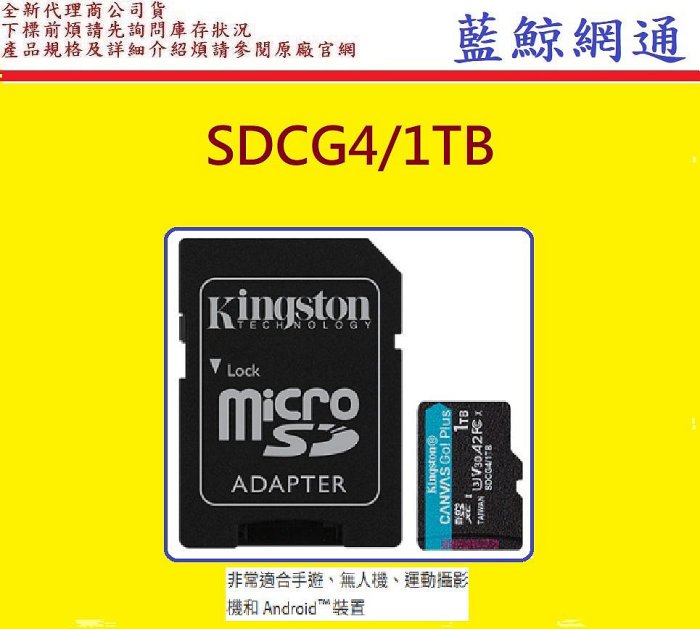 優寶購物《ubao.Tw》特貨品商城,黑貓宅配,取貨付款,【藍鯨】金士頓 Kingston Micro SDXC 1T記憶卡1TB SDCG4 200R/160W A2 U3 V30 | Yahoo拍賣
