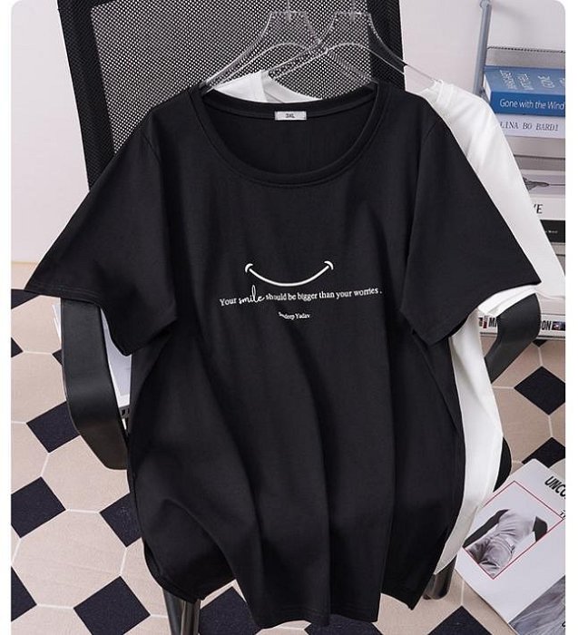 優寶購物《ubao.Tw》特貨品商城,黑貓宅配,取貨付款,大尺碼微笑印花寬鬆T恤長版寬鬆上衣KC 3XL-7XL | Yahoo拍賣