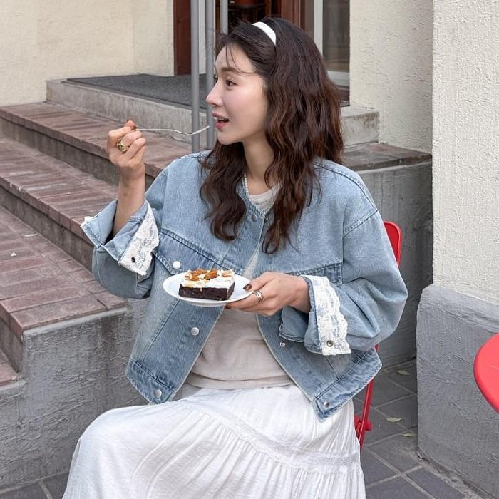 優寶購物《ubao.Tw》特貨品商城,黑貓宅配,取貨付款,Bellee 正韓 圓領拼接蕾絲袖牛仔夾克外套 【0418-4】 | Yahoo拍賣