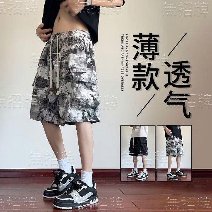 優寶購物《ubao.Tw》特貨品商城,黑貓宅配,取貨付款,無招牌廠家直銷店=美式迷彩扎染工裝短褲夏季休閑薄款五分褲口袋潮牌寬松潮流中褲 | Yahoo拍賣