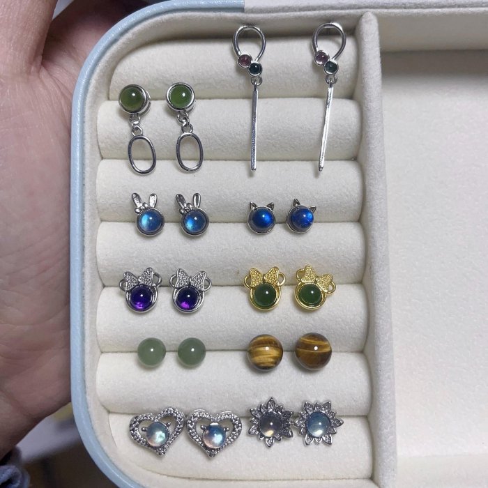 優寶購物《ubao.Tw》特貨品商城,黑貓宅配,取貨付款,灰月光碧玉碧璽虎眼石半銀耳釘耳墜,銀針防過敏,除了針其他部分半銀(銅鍍銀),-213 | Yahoo拍賣