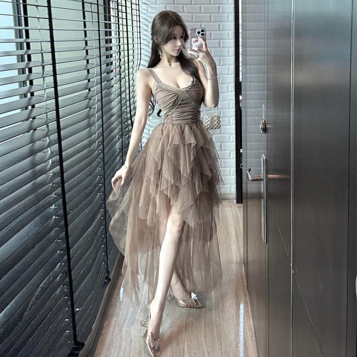 優寶購物《ubao.Tw》特貨品商城,黑貓宅配,取貨付款,夜店穿著 夜店風 夜店裝 夜店洋裝 細肩帶洋裝 夜店性感吊帶洋裝 連身裙 7879#2025女裝設計感不規則網紗吊帶禮服連衣裙洋裝連身裙 SH031 | Yahoo拍賣