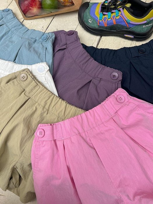 優寶購物《ubao.Tw》特貨品商城,黑貓宅配,取貨付款,miuko BABY 2025春 兒童女寶寶女童 女孩的造型 鈕扣 抓褶 寬褲 短褲 | Yahoo拍賣