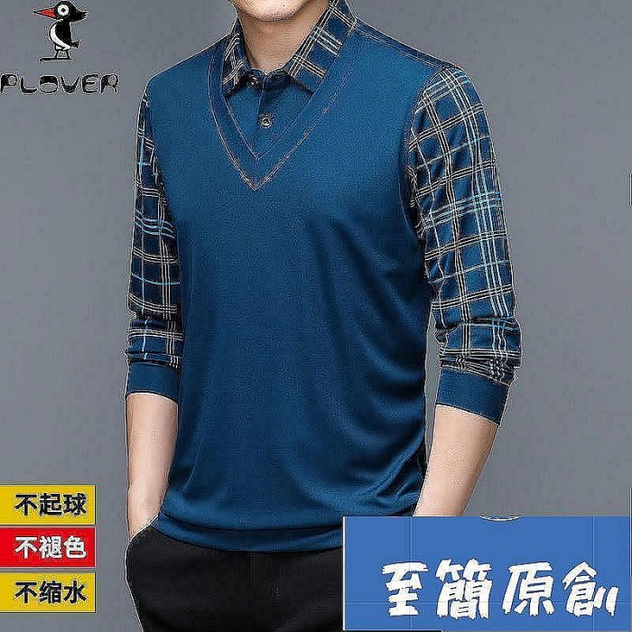 優寶購物《ubao.Tw》特貨品商城,黑貓宅配,取貨付款,韓版潮流打底衫男商務polo衫翻領polo衫長袖T恤【8折】 新款薄款假兩件POLO杉男士格子印花中年商務【滿299元出貨】 | Yahoo拍賣