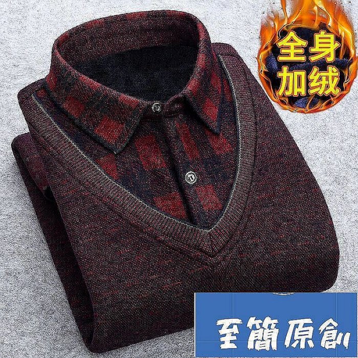 優寶購物《ubao.Tw》特貨品商城,黑貓宅配,取貨付款,針織假兩件毛衫 翻領男士長袖T恤 中老年人毛衣✁冬季男士假兩件毛衫男新款刷毛毛衣男襯衫領加厚V領針織【滿299元出貨】 | Yahoo拍賣