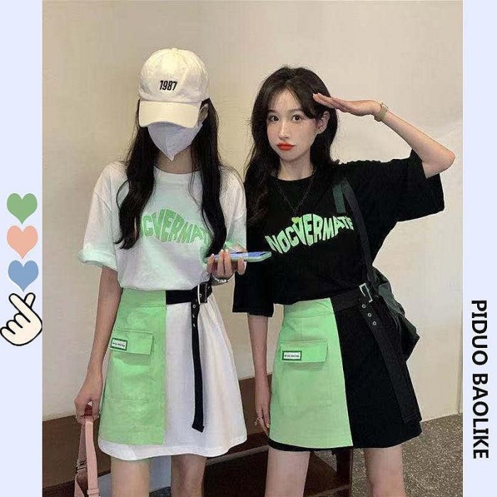 優寶購物《ubao.Tw》特貨品商城,黑貓宅配,取貨付款,甜酷套裝女 夏季短袖T恤半身裙寬鬆小個子兩件套 辣妹套裝 套裝裙 兩件式套裝 短裙套裝 韓版女裝 | Yahoo拍賣