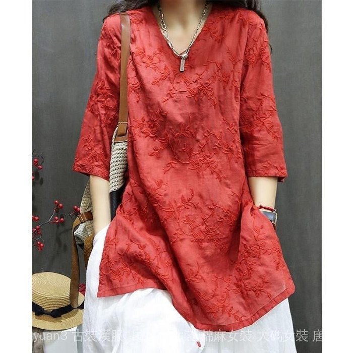 優寶購物《ubao.Tw》特貨品商城,黑貓宅配,取貨付款,複古休閒中長款刺繡寬鬆夏季棉麻2024麻襯衫七分袖上衣新款文藝 | Yahoo拍賣