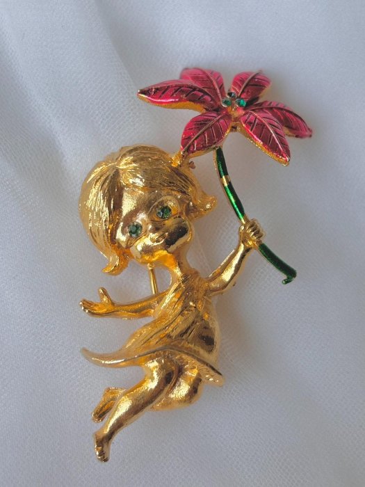 優寶購物《ubao.Tw》特貨品商城,黑貓宅配,取貨付款,美國vintage中古Mylu金色手拿花朵小女孩胸針可愛 材質:合金?萊茵石?琺瑯 尺寸∶長6cm 寬3.5cm 打標:Mylu 品相: | Yahoo拍賣