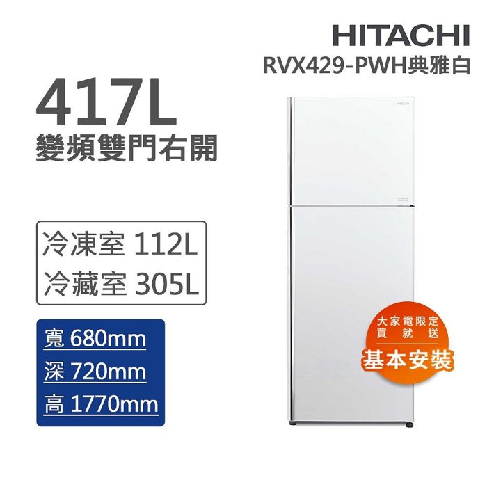 優寶購物《ubao.Tw》特貨品商城,黑貓宅配,取貨付款,泰昀嚴選 HITACHI日立 417L 一級能效變頻雙門右開冰箱 RVX429 線上刷卡免手續 全省配送拆箱定位 | Yahoo拍賣