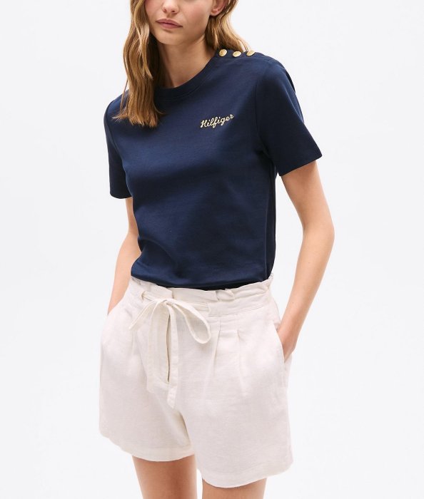 優寶購物《ubao.Tw》特貨品商城,黑貓宅配,取貨付款,【TH女生館】【TOMMY HILFIGER金釦LOGO草寫刺繡短袖T恤】【TOMG002A9】(M) | Yahoo拍賣