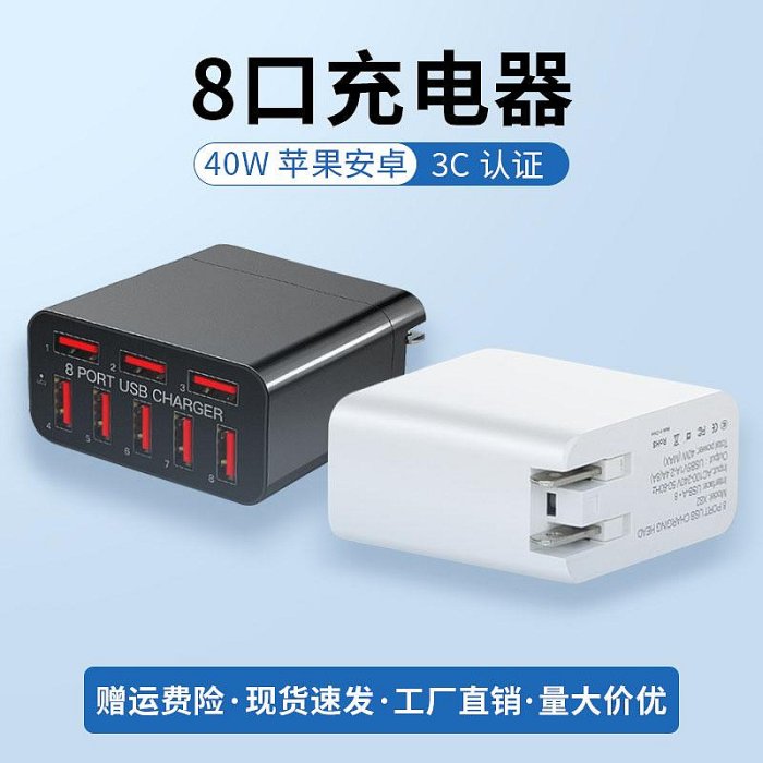 優寶購物《ubao.Tw》特貨品商城,黑貓宅配,取貨付款,多口usb充電器八口多孔快速快充插頭適用蘋果安卓手機充電器黑色 | Yahoo拍賣