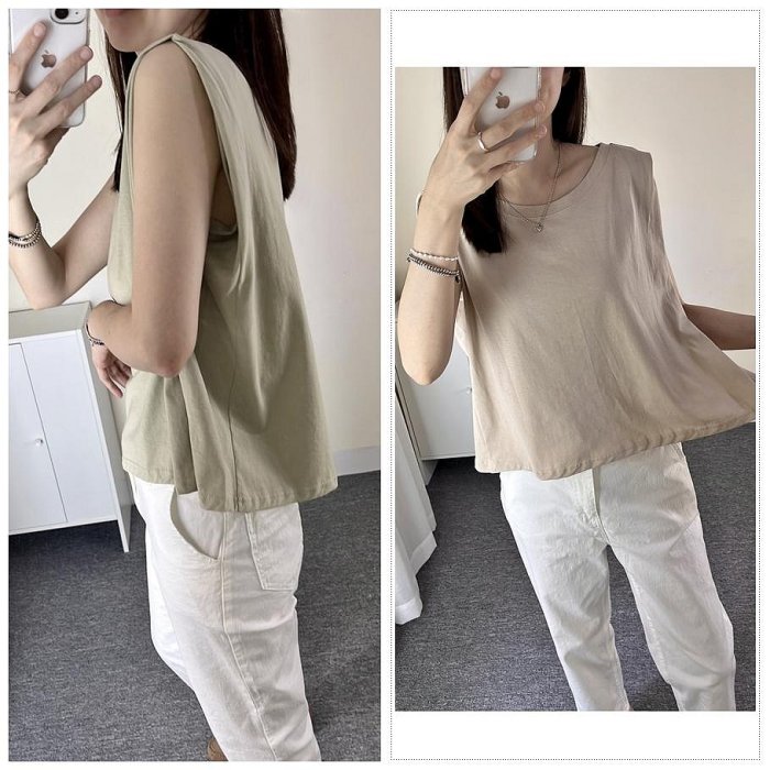 優寶購物《ubao.Tw》特貨品商城,黑貓宅配,取貨付款,【MA2520】韓 細節款! 好舒服絲光棉修飾手臂小寬鬆背心 (淺奶茶/霧綠/黑/白) | Yahoo拍賣