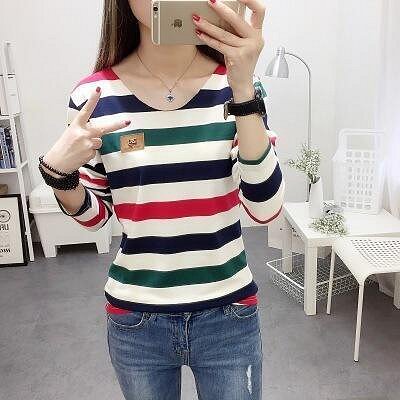 優寶購物《ubao.Tw》特貨品商城,黑貓宅配,取貨付款,秋季韓版韓范上衣長袖寬鬆條紋T恤女女性服裝流行女裝休閒服飾丷BA11503 | Yahoo拍賣