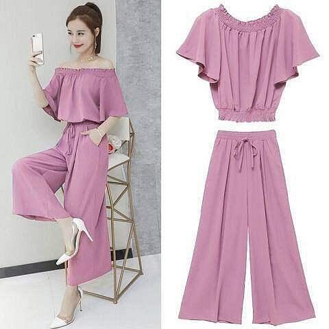 優寶購物《ubao.Tw》特貨品商城,黑貓宅配,取貨付款,一字肩雪紡上衣辣妹套裝女夏季韓版時尚闊腿褲垂墜感長褲兩件套女休閒套裝女性服飾流行女裝丷BC15544 | Yahoo拍賣