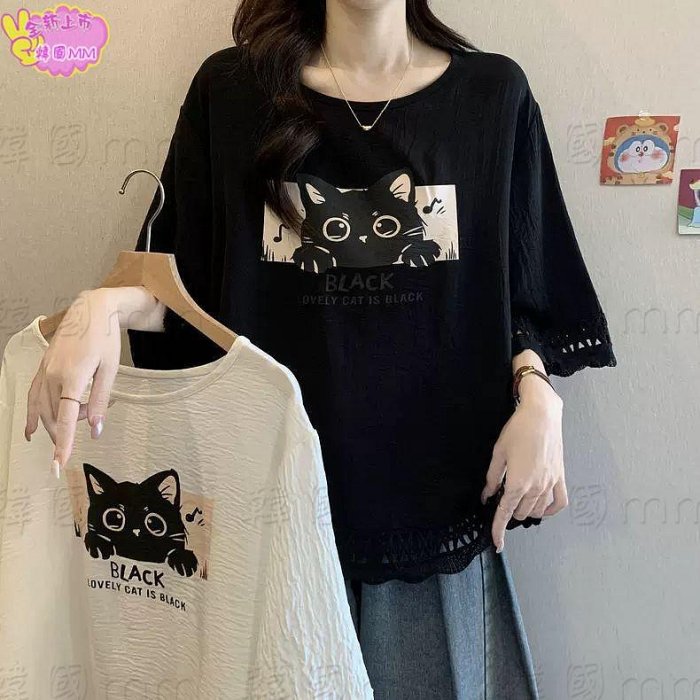優寶購物《ubao.Tw》特貨品商城,黑貓宅配,取貨付款,韓國MM=夏季新款大碼蕾絲鉤花胖mm寬松顯瘦遮肚休閑五分短袖上衣女=上衣/短t/打底衫/一字領t/雪紡/襯衫 | Yahoo拍賣