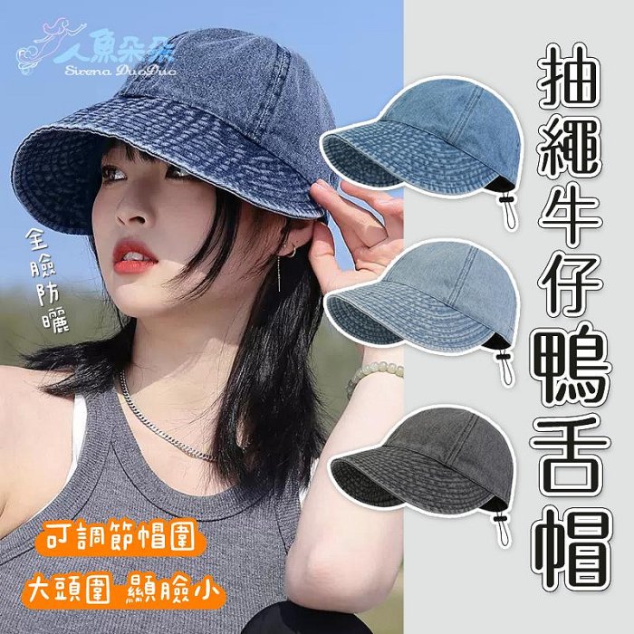 優寶購物《ubao.Tw》特貨品商城,黑貓宅配,取貨付款,丹寧抽繩鴨舌帽 台灣出貨 現貨 牛仔大檐遮陽帽 女夏出遊 薄款透氣防曬帽 抽繩鴨舌漁夫帽潮 防曬帽子 遮陽帽 Rainnie | Yahoo拍賣
