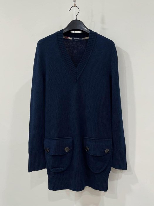 優寶購物《ubao.Tw》特貨品商城,黑貓宅配,取貨付款,BURBERRY 倫敦 V領排扣羊毛長版上衣 深藍 | Yahoo拍賣