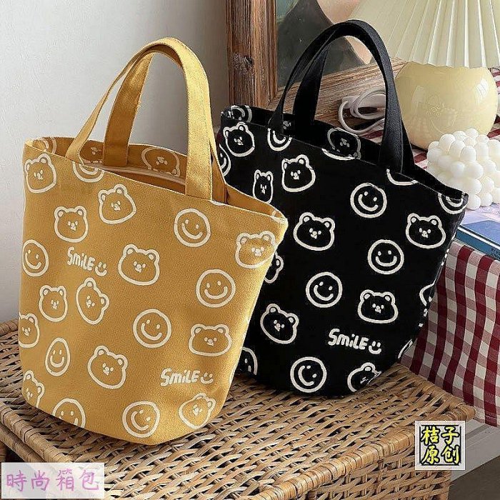 優寶購物《ubao.Tw》特貨品商城,黑貓宅配,取貨付款,【新品上新】日系小熊水桶型托特帆布包簡約百搭小容量單肩手提便當餐盒女包 | Yahoo拍賣