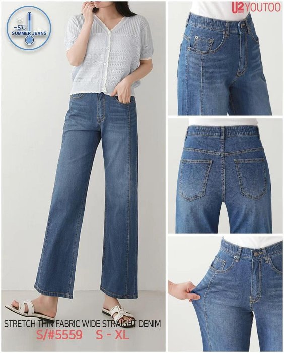 優寶購物《ubao.Tw》特貨品商城,黑貓宅配,取貨付款,$尋寶小舖$25正韓直送U2春夏最新款 -3°涼感輕磅薄料鬆緊腰扣3D車線9分左右丹寧牛仔直筒小寬褲#5559 | Yahoo拍賣
