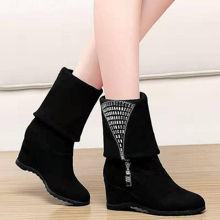 優寶購物《ubao.Tw》特貨品商城,黑貓宅配,取貨付款,新品熱賣 韓版重工女生中筒靴 高檔氣質時尚女生中筒韓版重工女靴刷毛秋冬新品坡跟時尚水鑽高跟女靴子中筒靴摺疊 | Yahoo拍賣