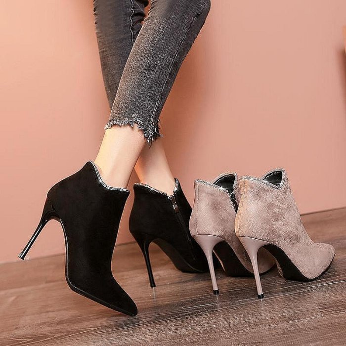 優寶購物《ubao.Tw》特貨品商城,黑貓宅配,取貨付款,韓版絨面細跟高跟靴 瘦瘦靴尖头高跟小短靴细跟百搭单靴潮冬 | Yahoo拍賣