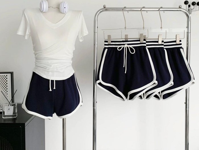優寶購物《ubao.Tw》特貨品商城,黑貓宅配,取貨付款,藏藍色M現貨特價!原價780!韓國代購Korea🇰🇷正韓 簡約設計過藏藍拼白色修身短款運動褲顯瘦高腰短褲 | Yahoo拍賣