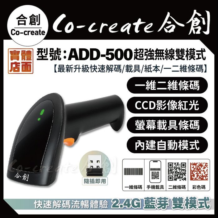 優寶購物《ubao.Tw》特貨品商城,黑貓宅配,取貨付款,【Co-create 合創】ADD-500 『無線專用』 一二維 條碼掃描器 行動支付 手機發票載具 掃描槍 掃描器 | Yahoo拍賣