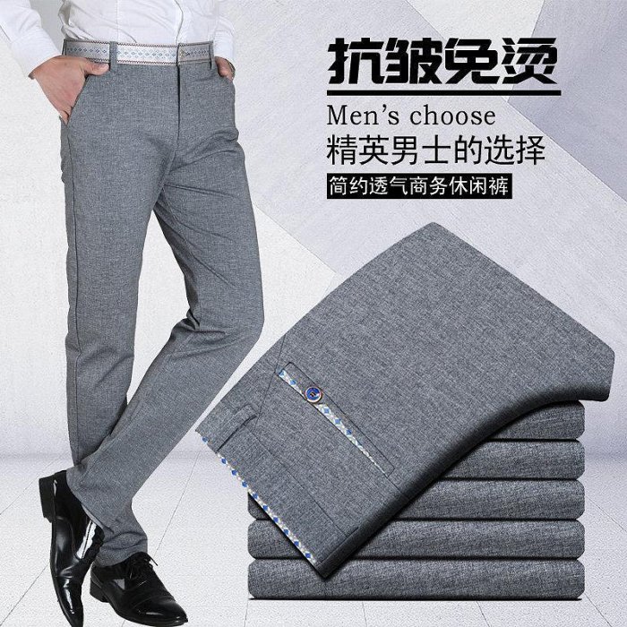 優寶購物《ubao.Tw》特貨品商城,黑貓宅配,取貨付款,夏季彈力休閑褲男士灰色直筒褲修身薄款長褲子顯瘦百搭黑色西褲潮 西裝長褲/西裝褲/休閑長褲/男士西裝褲 | Yahoo拍賣