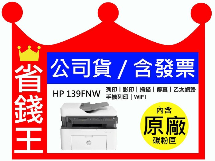 優寶購物《ubao.Tw》特貨品商城,黑貓宅配,取貨付款,HP Laser MFP 139fnw【送摺疊手機架+usb專用線】黑白雷射傳真多功事務機 WIFI 手機列印 | Yahoo拍賣