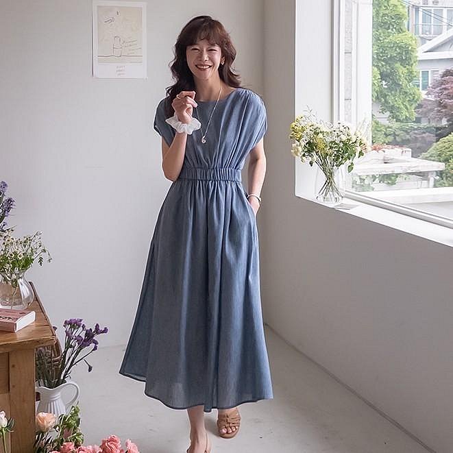 優寶購物《ubao.Tw》特貨品商城,黑貓宅配,取貨付款,Bellee 正韓 夏季舒適 優雅氣息細褶袖彈性腰身混紡洋裝 (4色) 【0604-4】 | Yahoo拍賣