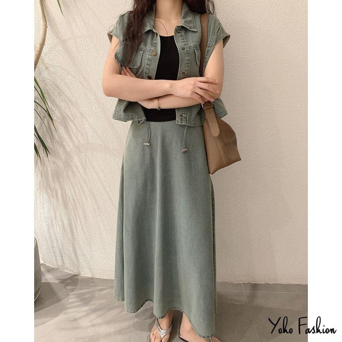 優寶購物《ubao.Tw》特貨品商城,黑貓宅配,取貨付款,YOHO 牛仔長裙套裝 實拍軟牛仔薄款透氣短款抽繩上衣+牛仔長裙 兩件式牛仔套裝 (OML2475) | Yahoo拍賣