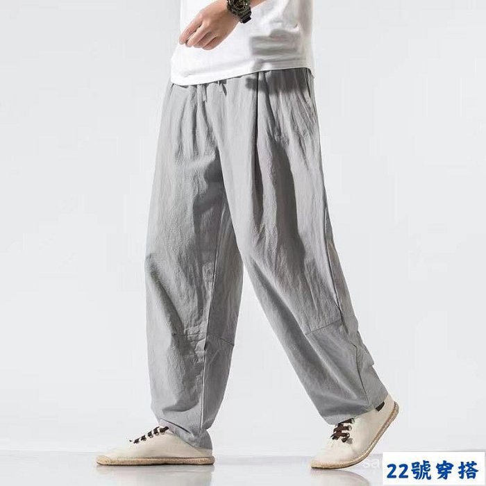 優寶購物《ubao.Tw》特貨品商城,黑貓宅配,取貨付款,🐱限時下殺🐱棉麻褲男 亞麻褲 大尺碼長褲【M-5XL】墜感闊腿褲男寬鬆直筒亞麻褲春夏麻料燈籠褲胖子棉麻休閑褲 BING-22號穿搭 | Yahoo拍賣