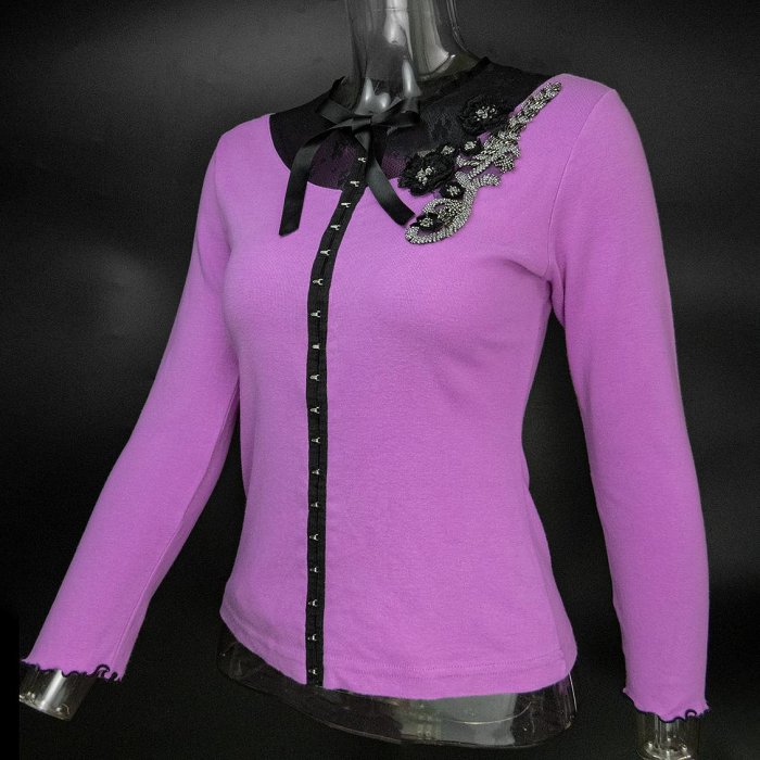 優寶購物《ubao.Tw》特貨品商城,黑貓宅配,取貨付款,美國時尚設計品牌ANNA SUI 安娜蘇經典紫黑配色立體蕾絲花朵串珠透膚九分袖外套 美國製 | Yahoo拍賣