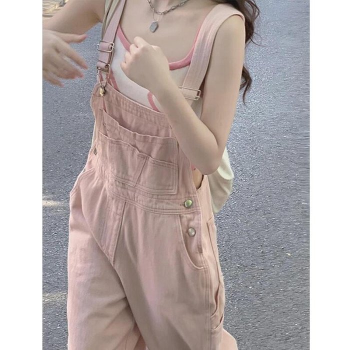 優寶購物《ubao.Tw》特貨品商城,黑貓宅配,取貨付款,粉色牛仔抱 袋褲女夏季新款小個子寬鬆復古休閒直筒工裝淺色連身褲 | Yahoo拍賣