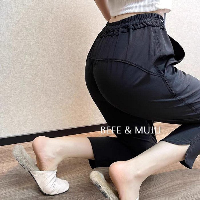 優寶購物《ubao.Tw》特貨品商城,黑貓宅配,取貨付款,BEFE時尚精品 夏季薄款 冰絲彈性八分 側開叉煙管褲 大尺碼B06122 | Yahoo拍賣