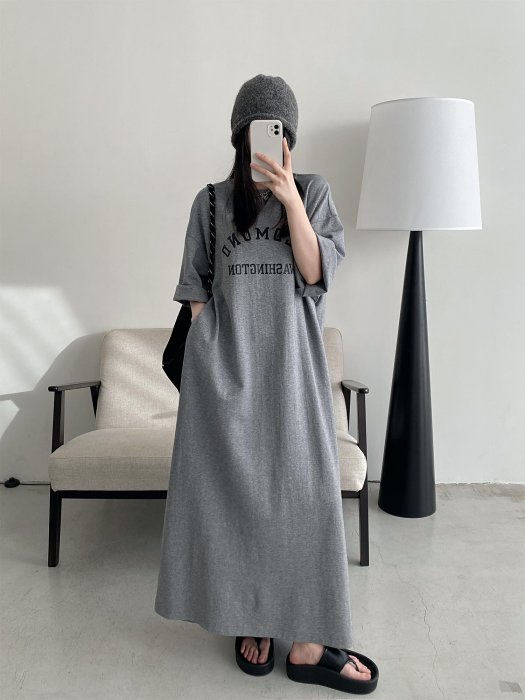 優寶購物《ubao.Tw》特貨品商城,黑貓宅配,取貨付款,IM 兩色歐美風美式字母落肩短袖及地T恤洋裝/精緻柔軟水洗棉!韓國oni休閒半袖A字超長版慵懶T恤裙 | Yahoo拍賣