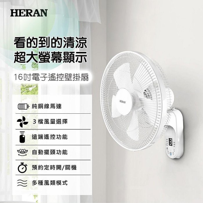 優寶購物《ubao.Tw》特貨品商城,黑貓宅配,取貨付款,【2025年新款 快速出貨】HERAN 禾聯 16吋 電子遙控壁掛電風扇 HLF-16CH56A | Yahoo拍賣