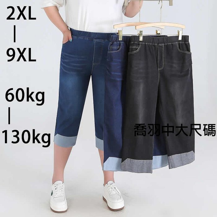 優寶購物《ubao.Tw》特貨品商城,黑貓宅配,取貨付款,大尺碼彈力牛仔褲鬼洗刷色鬆緊腰圍刷破七分薄款牛仔褲2XL-9XL DW | Yahoo拍賣