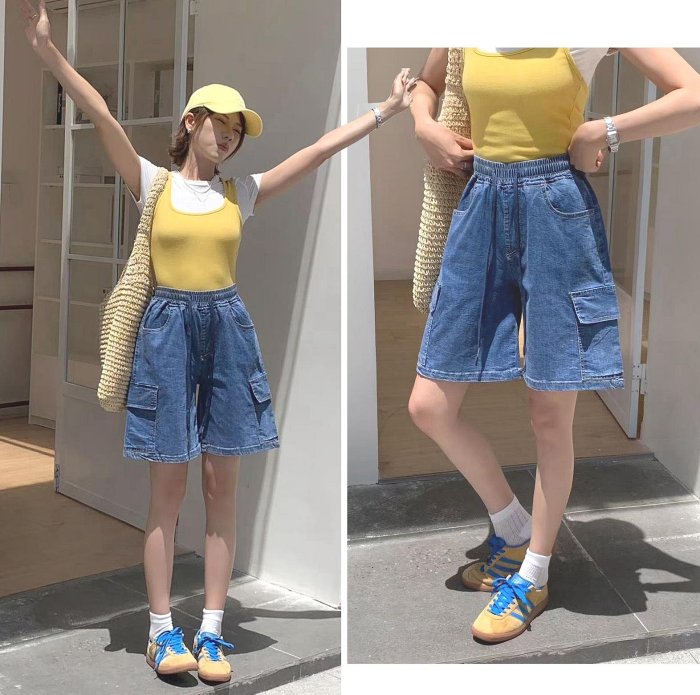 優寶購物《ubao.Tw》特貨品商城,黑貓宅配,取貨付款,現貨《M~2L》大加尺碼牛仔短褲【8306】薄款.韓版工裝風彈性短褲牛仔短褲寬管褲/大尺碼短褲/鑽石比例.時尚TINA中大尺碼 | Yahoo拍賣